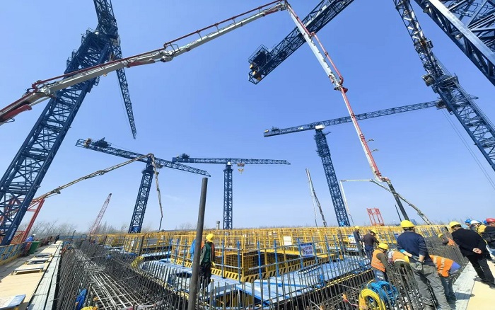 施工队长紧盯现场,,,激动地说:“这超长臂架太给力了,,,以往要重复挪车的难题,,,现在轻松解决,,,进度直接提速!”