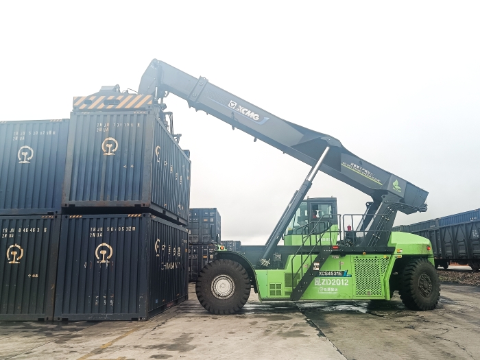 作为国铁系统内的主要枢纽,,,,,,这里日均肩负着煤炭、铁矿等货物集装箱化转运使命。。。。。w66利来电动正面吊的进驻,,,,,,标记着该货场电动化历程再提速。。。。。